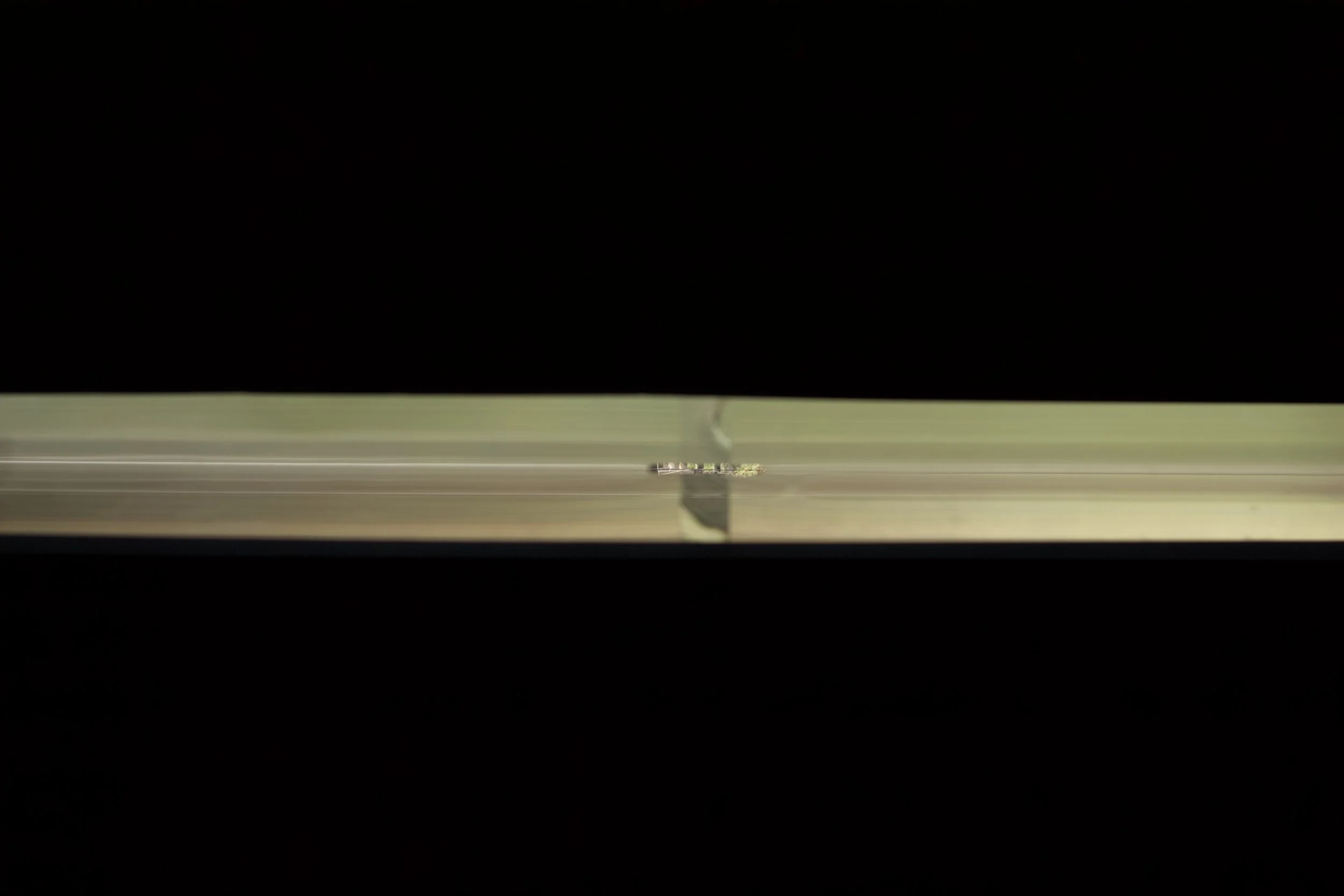 Percibir de manera diferente. Mirar hacia arriba no es lo mismo que ver el cielo en la pieza: las placas inclinadas combinan distintos ángulos a la vez que, al estar ubicadas en el piso, uno puede alejarse, acercarse y moverse alrededor. El reflejo distorsionado del cielo genera la comparación entre lo que uno ve en las placas y lo que uno ve al mirar hacia arriba. El cielo completa la pieza y esto solo se aprecia experimentándola.