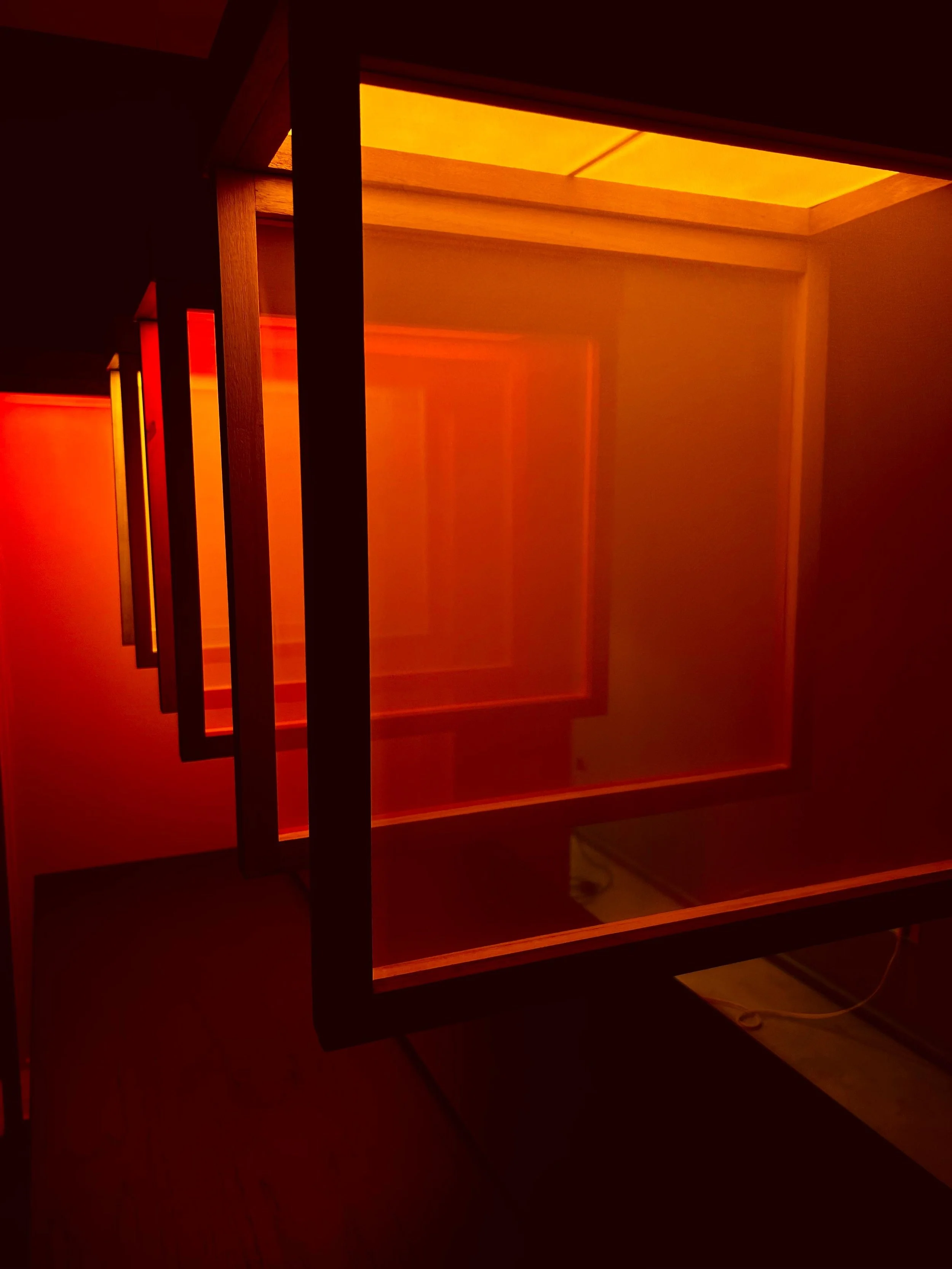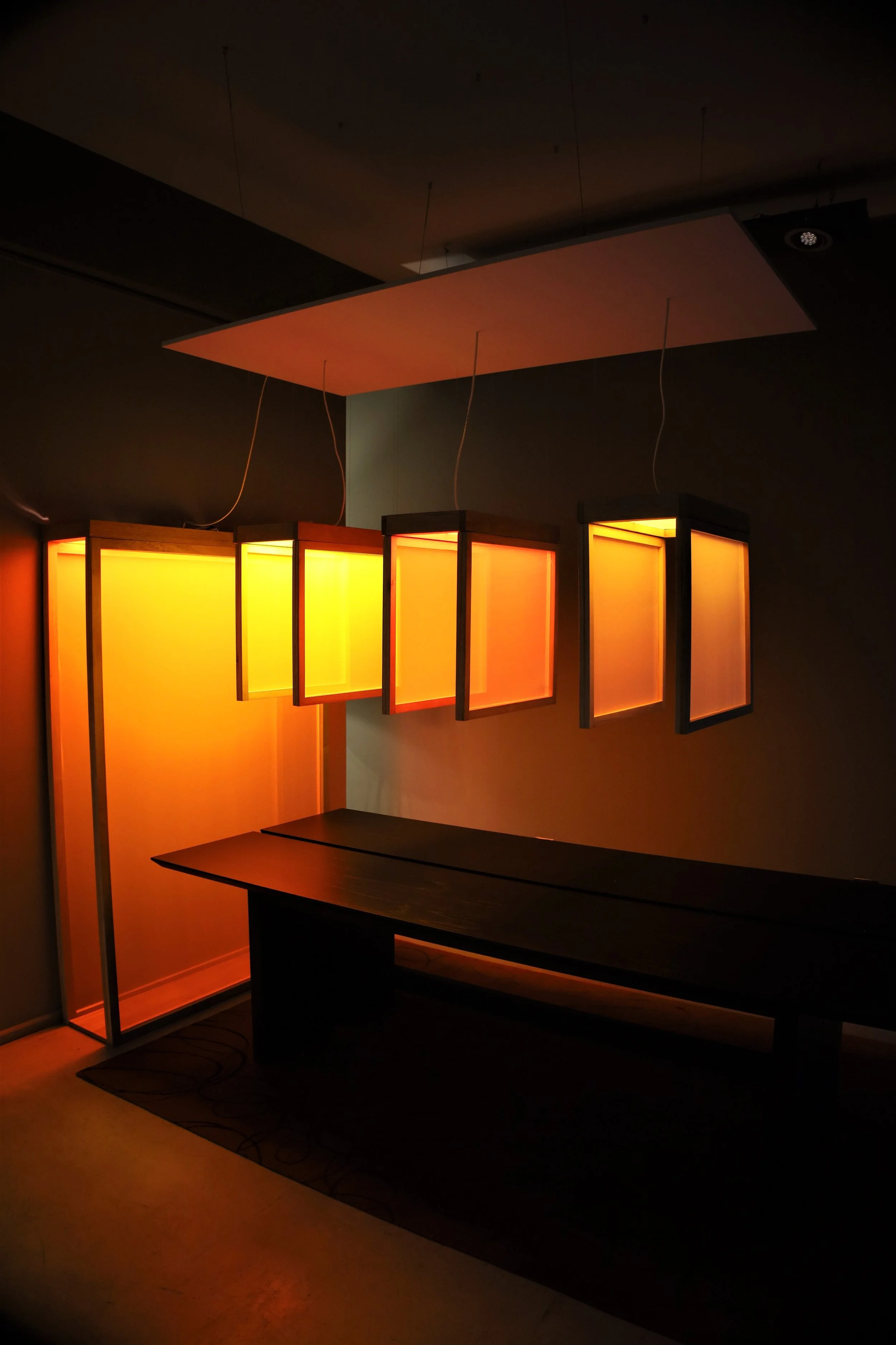 Untitled I is a site-conditioned installation displayed in the shop-window of La Compañía. The viewer is compelled to notice something normally overlooked: light. Most people relate to light only functionally—if it’s too dark, they switch it on; when they leave the room, they switch it off. The work’s colors and depth invite exploration: one walks around it, slips a hand between the panels and watches how the hand lights up, touches the translucent material to understand it, searches for angles to see how the colors merge, how the light transforms the table and the room. The piece cultivates an attentive attitude in the spectator, prompting a deeper awareness of the things that surround us—the world we live in.