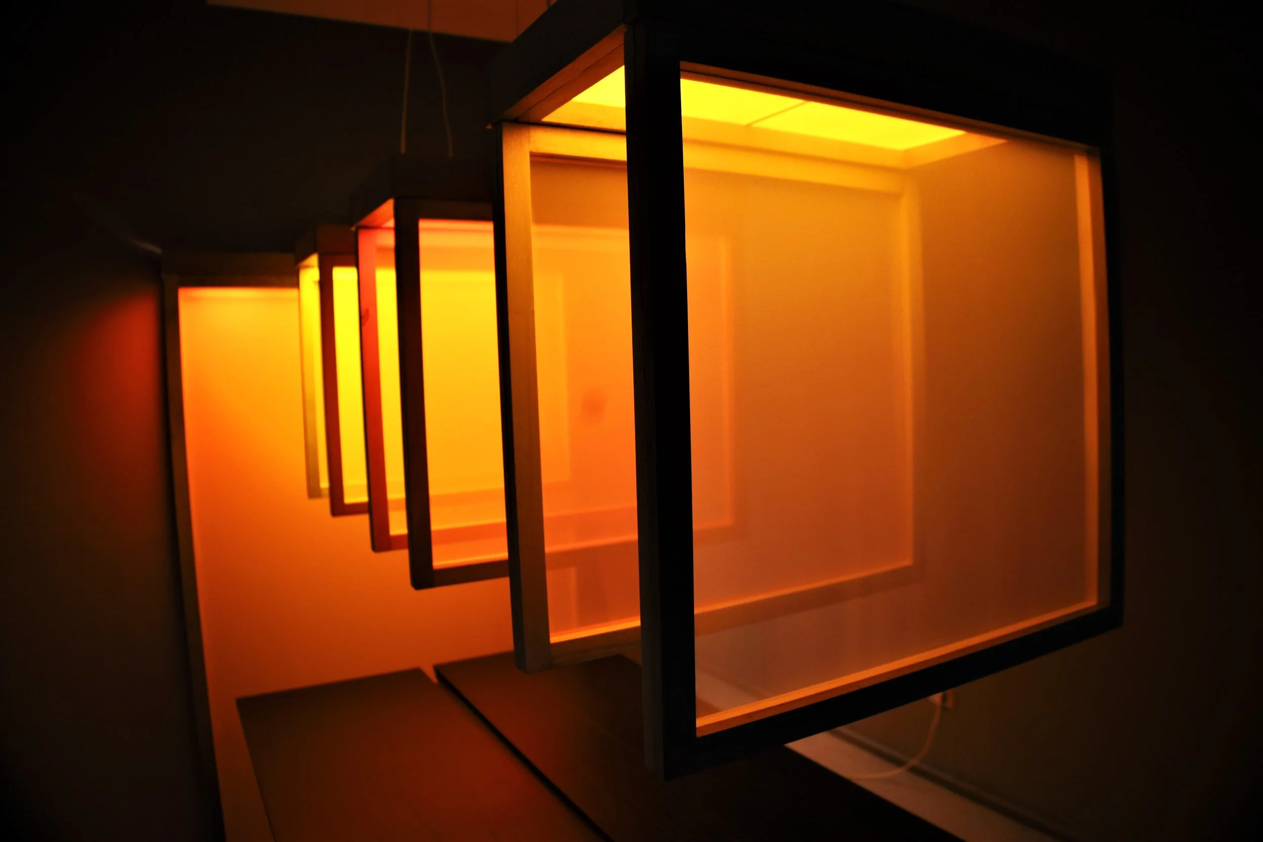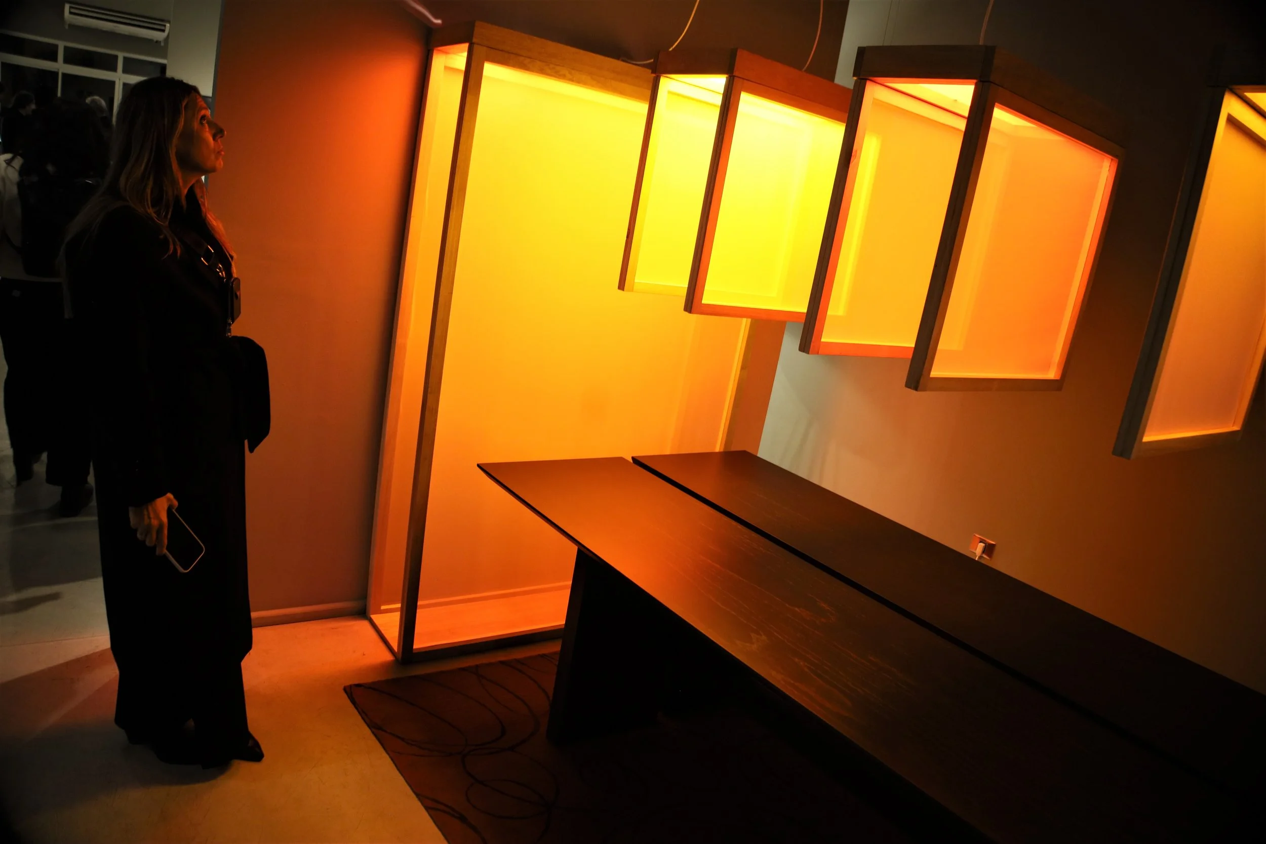 Untitled I es una instalación site-conditioned expuesta en la vidriera de La Compañía. El espectador es obligado a ver algo que normalmente pasa por alto: la luz. La mayoría de las personas tienen una relación de funcionalidad con la luz — si está muy oscuro la prendo; me voy de la habitación y la apago. Los colores y la profundidad de la obra generan investigación, uno camina alrededor, mete la mano entre los paneles y mira cómo se ilumina, toca el material translúcido para entender, busca ángulos para ver cómo los colores se combinan, cómo la luz cambia la mesa y la habitación. Se genera una actitud atenta en el espectador llevándolo a conocer mejor las cosas que lo rodean — el mundo en el que vivimos.
