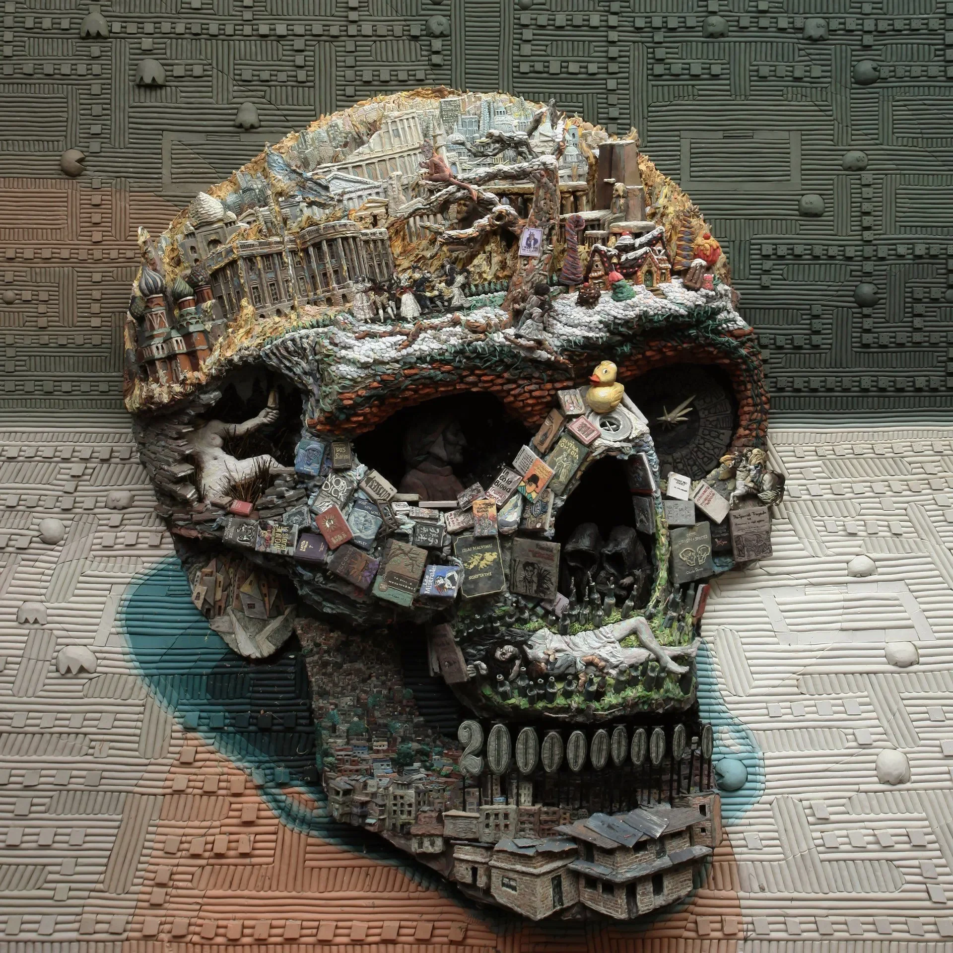 Mondongo. (n.d.). Skulls [Plasticine on wood]